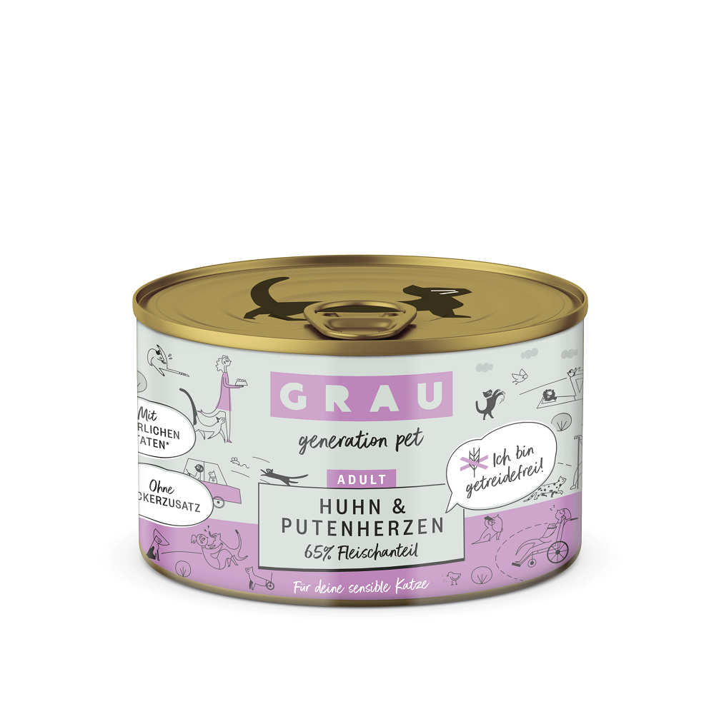 ΑΠΟΛΑΥΣΤΙΚΗ ΚΑΙ ΕΞΑΙΡΕΤΙΚΑ ΘΡΕΠΤΙΚΗ ΥΓΡΗ ΤΡΟΦΗ ΣΕ ΚΟΝΣΕΡΒΑ ΓΙΑ ΕΝΗΛΙΚΕΣ ΓΑΤΕΣ ΣΕ ΚΟΝΣΕΡΒΑ GRAU CATS CHICKEN, TURKEY HEARTS ΜΕ 97% ΚΡΕΑΣ ΑΠΟ ΚΟΤΟΠΟΥΛΟ, ΚΑΡΔΙΕΣ ΓΑΛΟΠΟΥΛΑΣ ΚΑΙ ΖΩΜΟ, ΧΩΡΙΣ ΣΙΤΗΡΑ