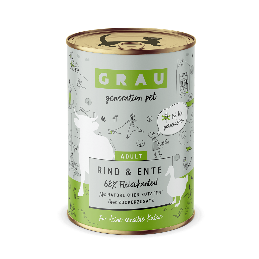 ΑΠΟΛΑΥΣΤΙΚΗ ΚΑΙ ΕΞΑΙΡΕΤΙΚΑ ΘΡΕΠΤΙΚΗ ΥΓΡΗ ΤΡΟΦΗ ΣΕ ΚΟΝΣΕΡΒΑ ΓΙΑ ΕΝΗΛΙΚΕΣ ΓΑΤΕΣ ΣΕ ΚΟΝΣΕΡΒΑ GRAU CATS BEEF, DUCK ΜΕ 97% ΚΡΕΑΣ ΑΠΟ ΒΟΔΙΝΟ ΚΡΕΑΣ, ΠΑΠΙΑ ΚΑΙ ΖΩΜΟ, ΧΩΡΙΣ ΣΙΤΗΡΑ