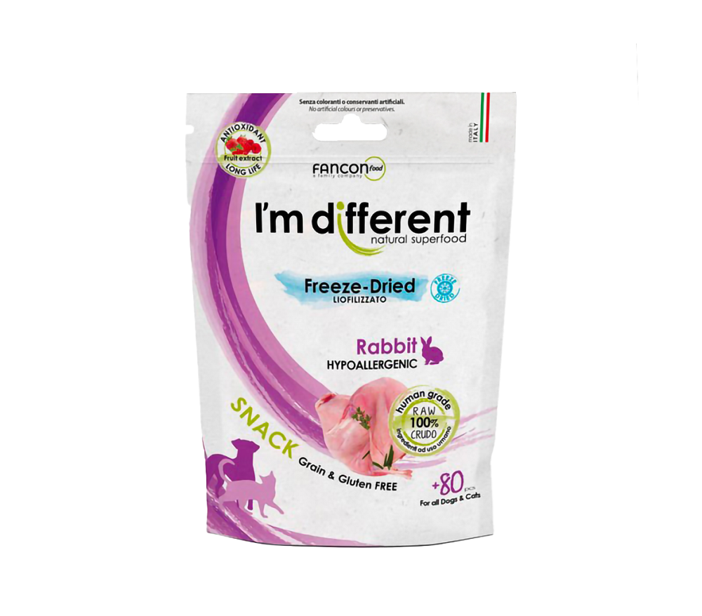 I'M DIFFERENT ΞΗΡΑΣ ΨΥΞΗΣ (FREEZE-DRIED) ΑΠΟΞΗΡΑΜΕΝΗ ΥΠΟΑΛΛΕΡΓΙΚΗ ΛΙΧΟΥΔΙΑ ΓΙΑ ΣΚΥΛΟΥΣ ΚΑΙ ΓΑΤΕΣ ΜΕ ΚΟΥΝΕΛΙ