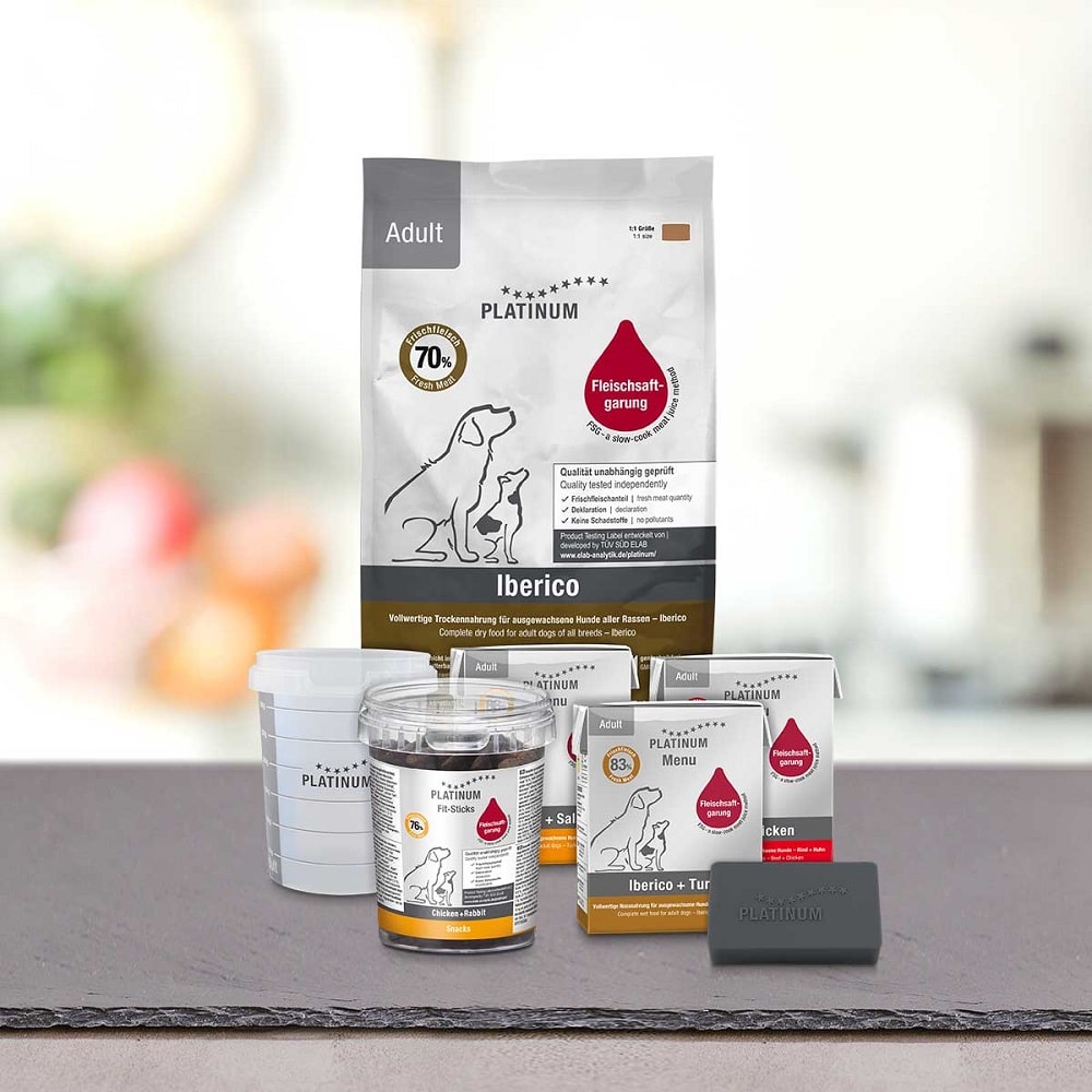 Οι πλήρεις μαγειρευτές (FSG) τροφές και λιχουδιές PLATINUM είναι κατάλληλες για σκυλιά κάθε ηλικίας ή ράτσας, χάρη στη φυσική, υγιεινή σύνθεσή τους και την ευκολία με την οποία μπορούν να χωνευτούν. Απαλλαγμένες από ανεπιθύμητα πρόσθετα που καταπονούν τον οργανισμό, περιέχουν μόνο υψηλής ποιότητας συστατικά, τα οποία επιτρέπονται ακόμα και για ανθρώπινη κατανάλωση: