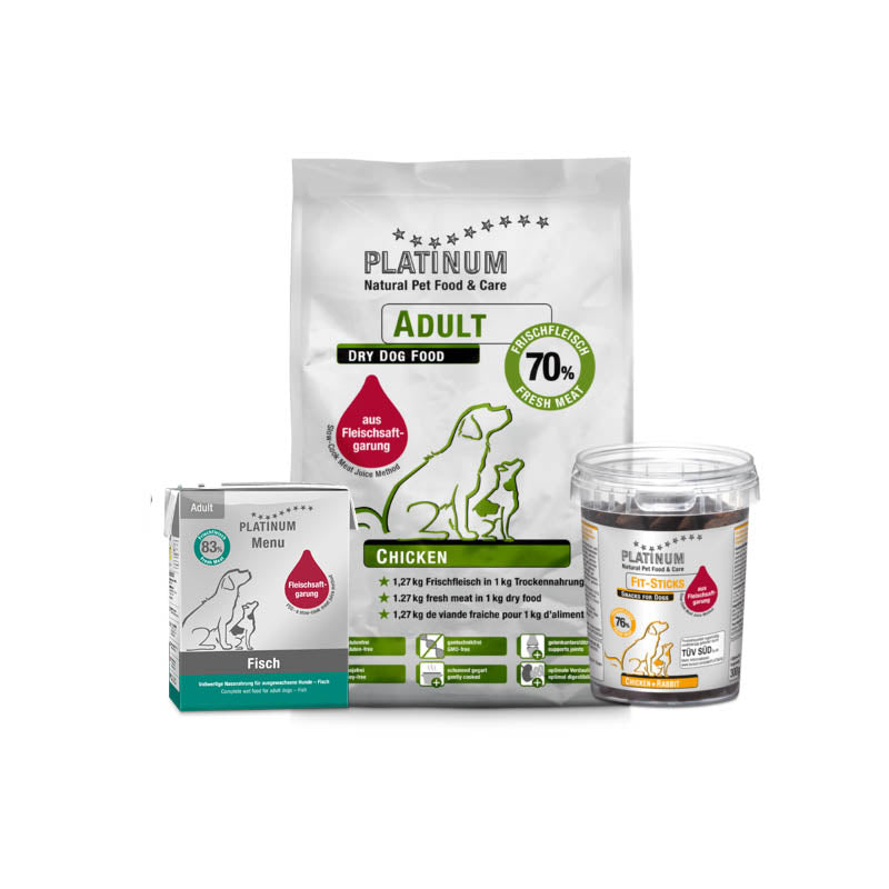 Οι πλήρεις μαγειρευτές (FSG) τροφές και λιχουδιές PLATINUM είναι κατάλληλες για σκυλιά κάθε ηλικίας ή ράτσας, χάρη στη φυσική, υγιεινή σύνθεσή τους και την ευκολία με την οποία μπορούν να χωνευτούν. Απαλλαγμένες από ανεπιθύμητα πρόσθετα που καταπονούν τον οργανισμό, περιέχουν μόνο υψηλής ποιότητας συστατικά, τα οποία επιτρέπονται ακόμα και για ανθρώπινη κατανάλωση: