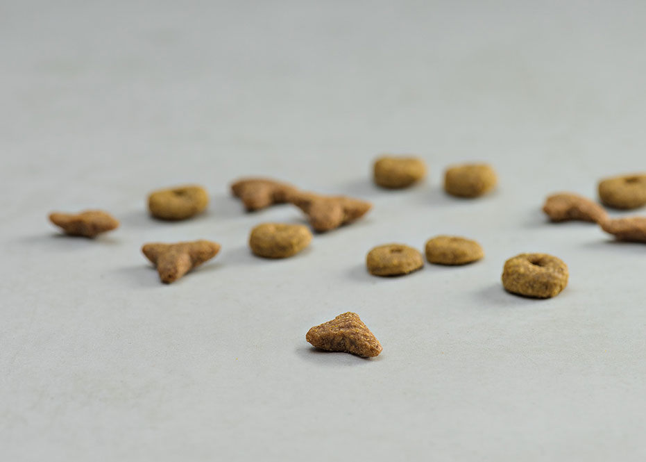 Σύνθεση:Αφυδατωμένα πουλερικά (23%), σιτάρι, καλαμπόκι, γλουτένη αραβοσίτου, ζωικά λίπη (μοσχάρι, πουλερικά), ρύζι, αφυδατωμένα ψάρια (4% σε κροκέτες σε σχήμα ψαριού*), υδρολυμένο συκώτι κοτόπουλου, μαγιά, λάδι σολομού (0,5%), μέταλλα (χλωριούχο νάτριο), φρουκτο-ολιγοσακχαρίτες (FOS) (0,04%) και εκχυλίσματα βοτάνων.
