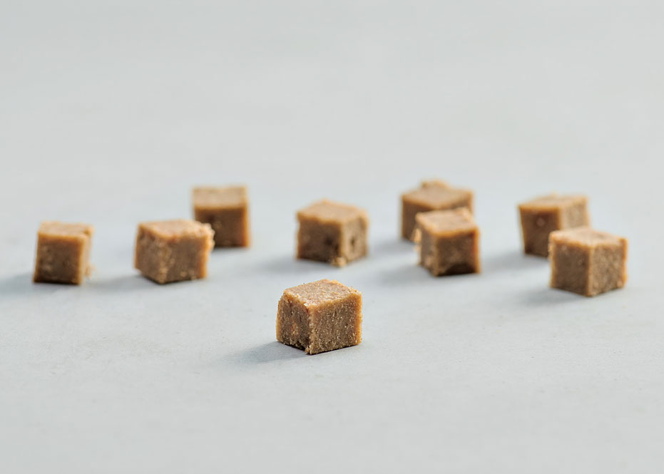 Γαλοπούλα (70%), πρωτεΐνη πατάτας (15%), άμυλο πατάτας (8%), αποξηραμένο κιχώριο, ινουλίνη, λάδι σολομού, φύκια, όξινο φωσφορικό ασβέστιο, ανθρακικό ασβέστιο, τριπολυφωσφορικό νάτριο.