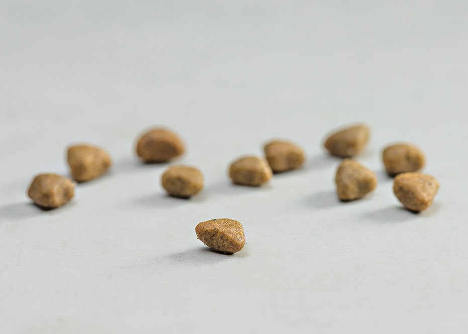 Σύνθεση:Υδρολυμένη πρωτεΐνη σολομού (20%), γλυκοπατάτα, αφυδατωμένος σολομός (16%), ζωικό λίπος, πρωτεΐνη μπιζελιού, μπιζέλι, σκόνη ολόκληρου αυγού, λάδι σολομού (3,5%), υδρολυμένο συκώτι, πολτός τεύτλων, μαγιά, αποξηραμένος πολτός κιχωρίου (α φυσική πηγή FOS και ινουλίνης), αποξηραμένο κριλ της Ανταρκτικής (φυσική πηγή EPA και DHA) (1,3%), κυτταρίνη, αποξηραμένο προϊόν ζύμωσης aspergillus niger (φυσική πηγή FOS, GOS και MOS) (0,5%), λεκιθίνη, μέταλλα (ανθρακικό ασβέστιο), εκχυλίσματα βοτάνων & άλατα κυττάρων Schüssler (dioscorea, polygonatum, morus fruit, cornu cervi deglatinatum, ψωραλέα, cnidium, cyperus, gallus, crataegus, κυτταρικά άλατα Schüssler αρ. 6, 107, ). ), κράνμπερι.